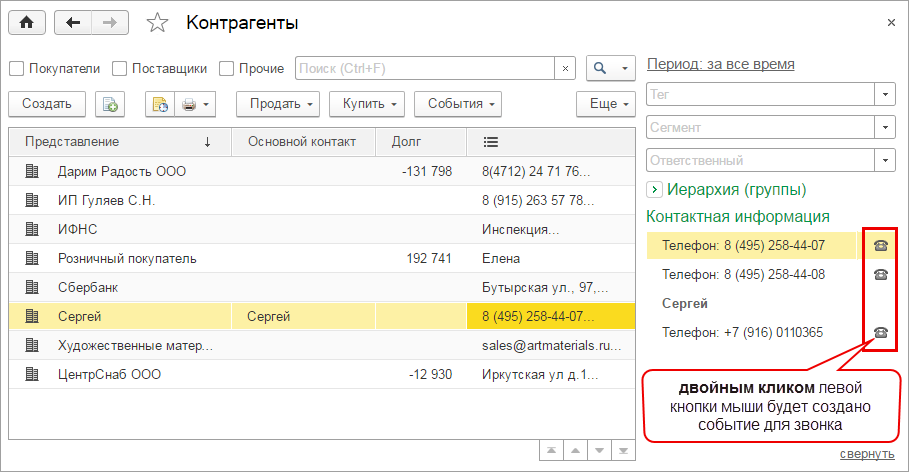 Совершить звонок клиенту из 1С:УНФ можно несколькими способами