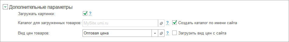 При необходимости, укажите параметры загрузки с сайта, развернув группировку Дополнительные параметры.