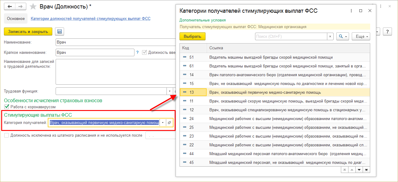 Перед заполнением документа необходимо в карточках должностей заполнить категорию согласно перечню ФСС: