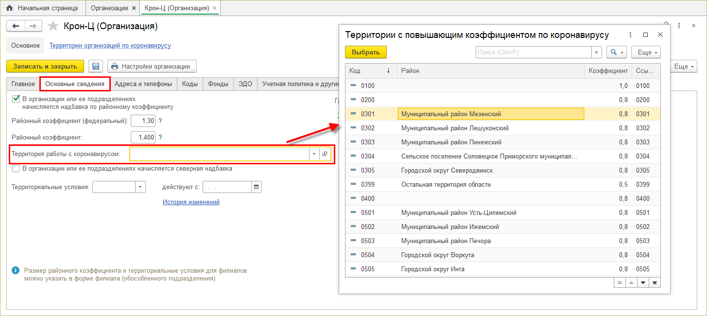 И в карточке организации, при необходимости, указать территорию также согласно классификатору ФСС: