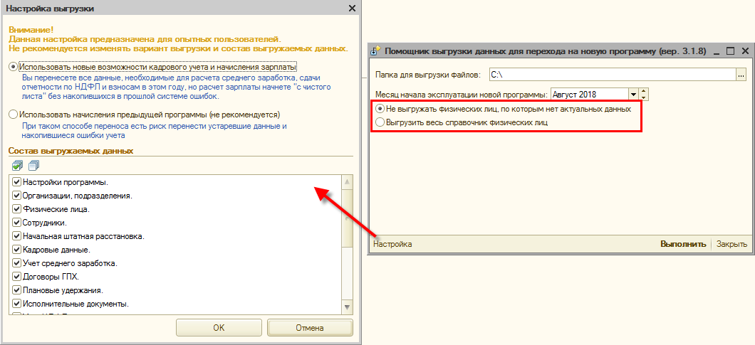 Сохраненный помощник нужно открыть в прежней программе. Обращаем внимание, что в нем реализованы дополнительные возможности настройки переноса данных:
