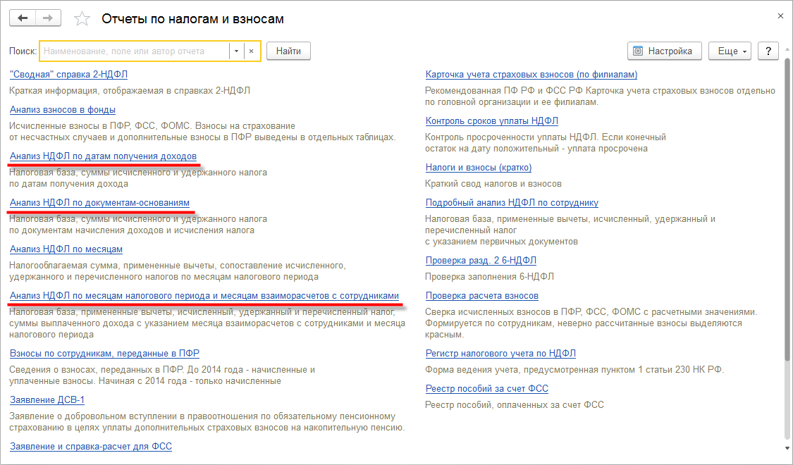 В версии 3.1.8 добавлены новые отчеты для анализа НДФЛ.