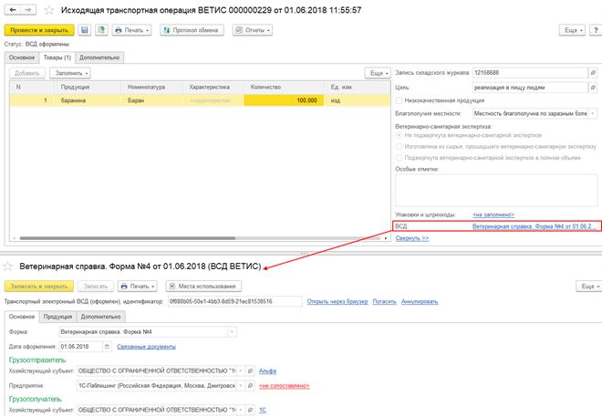 При закупке продукции ВЕТИС должен погашаться входящий сертификат, с которым поставлена продукция, и оформлен новый исходящий ветеринарный сертификат на эту продукцию.