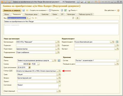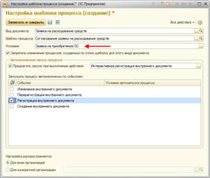 Например, добавлять в список согласующих лиц процесса Согласование заявки на расходование средств руководителя отдела снабжения, если в документе используется статья Оплата поставщикам ОС и НМА.
