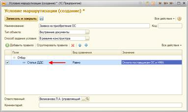 Статью ДДС можно выбрать при настройке условий маршрутизации в шаблонах бизнес-процессов.