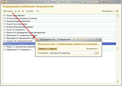 В новой версии программы управление доступом пользователей к мобильному приложению ведется в одном окне Разрешенные мобильные пользователи.
