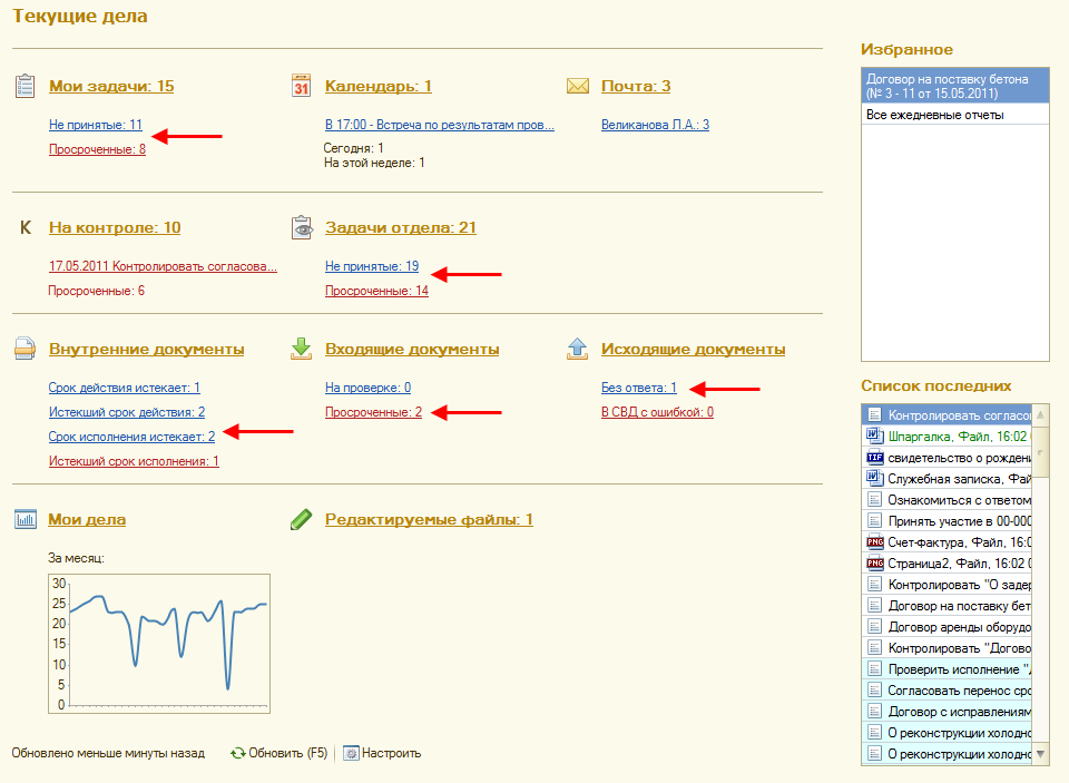 Рис. 3. Ссылки на новые отчеты в окне «Текущие дела»
