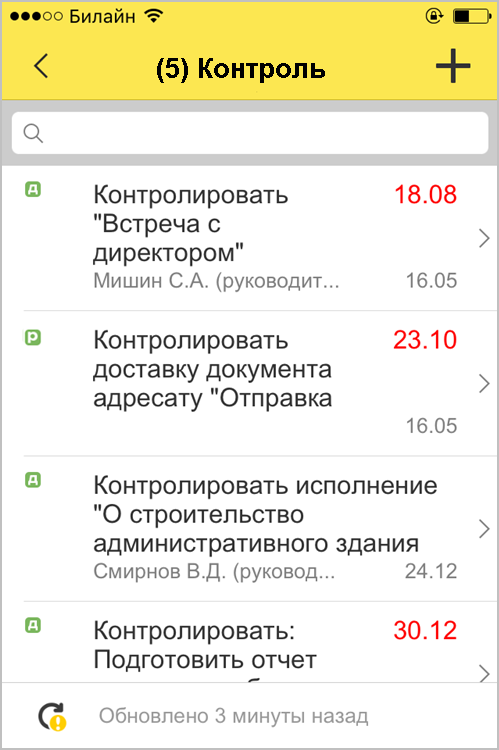 Рис. 5. Признак делегирования и ролевой адресации в списке «На контроле»