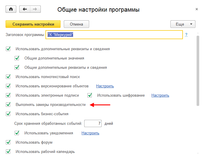 Также должна быть включена функциональная опция Выполнять замеры производительности, расположенная в общих настройках программы.