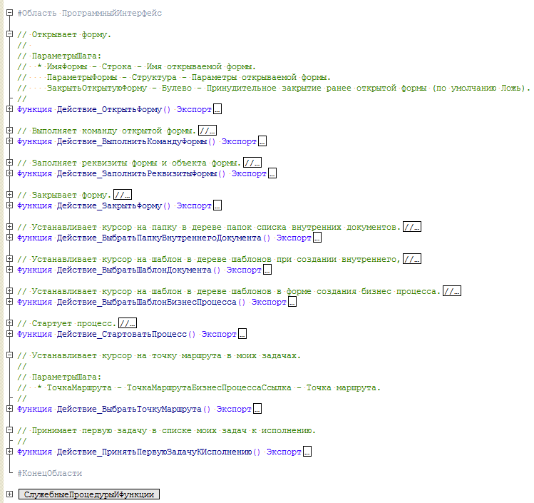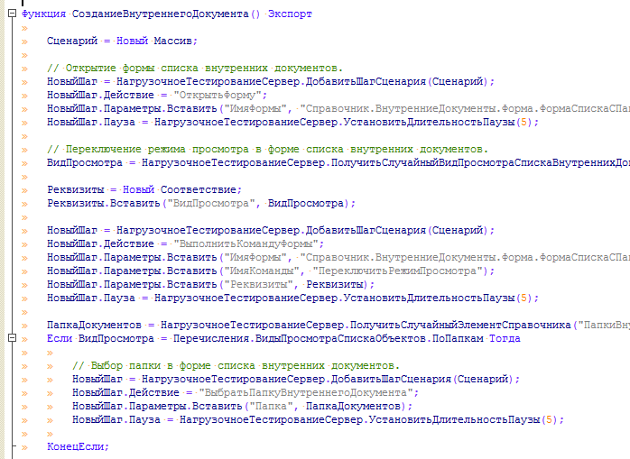 Каждый шаг сценария представляет собой выполнение определенного действия. Действия располагаются в модуле НагрузочноеТестированиеДействия.