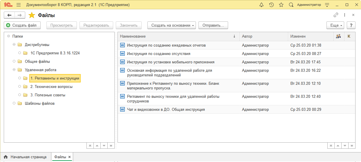В папке Удаленная работа – пакет документов для организации удаленной работы сотрудников предприятия.