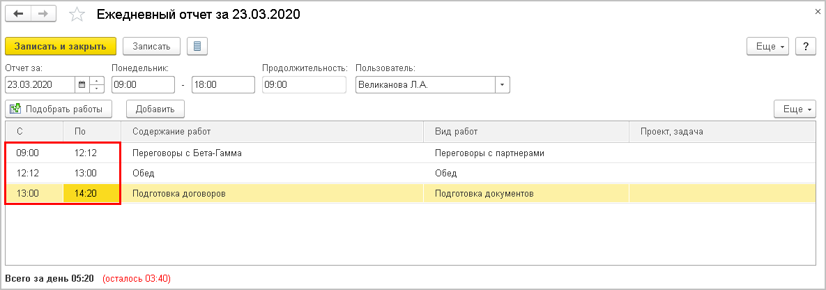 Для более прозрачного контроля занятости при удаленной работе теперь в ежедневных отчетах по умолчанию вводится не длительность, а время начала и окончания работ.