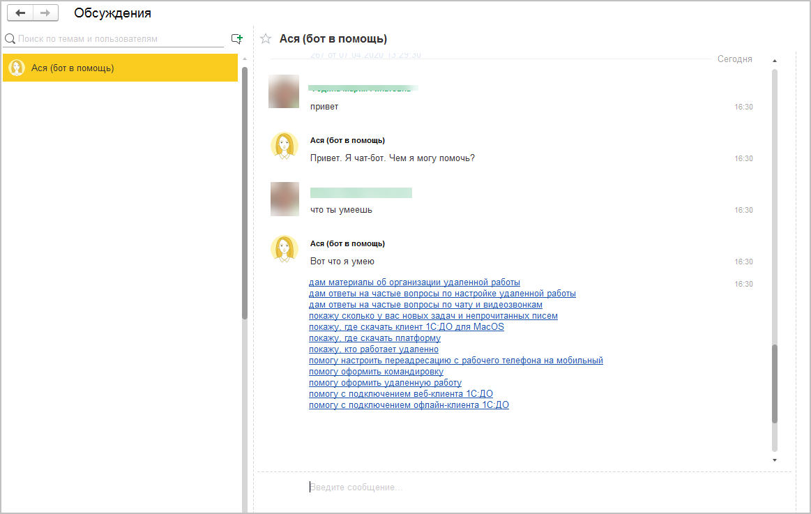 В программе появился чат-бот. Мы назвали его – Ася. Она еще «учится», но уже умеет отвечать на некоторые вопросы, открывать файлы и выполнять действия.