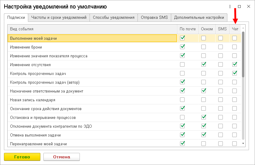 Настроить способ получения уведомлений в чате может как администратор, так и пользователи в персональных настройках программы.