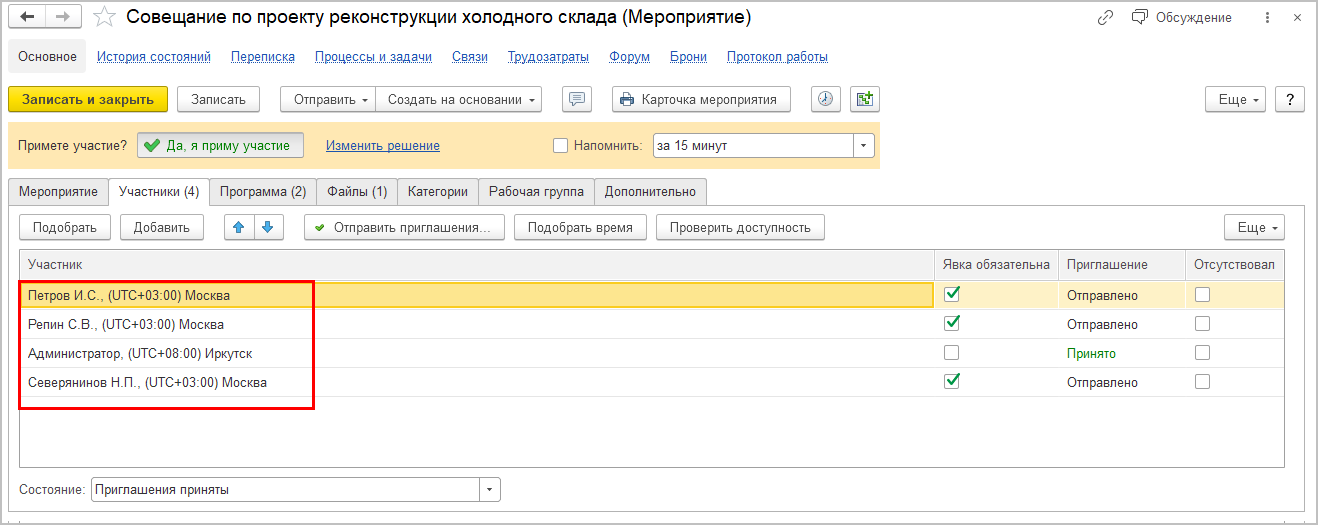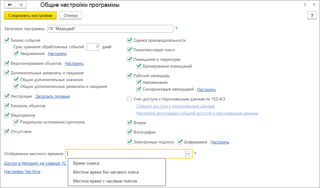 Теперь программа поддерживает работу сотрудников в различных часовых поясах в мероприятиях, отсутствиях, бронировании помещений. В этих сценариях пользователи теперь видят даты в часовом поясе своего компьютера.