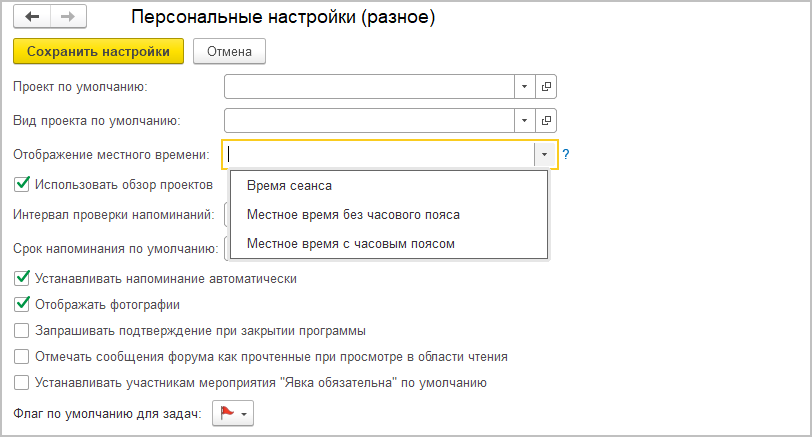 Для этого в Настройках программы – Проекты и трудозатраты нужно выбрать один из предложенных вариантов работы.