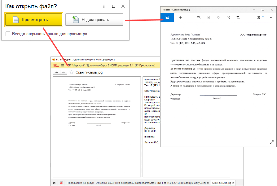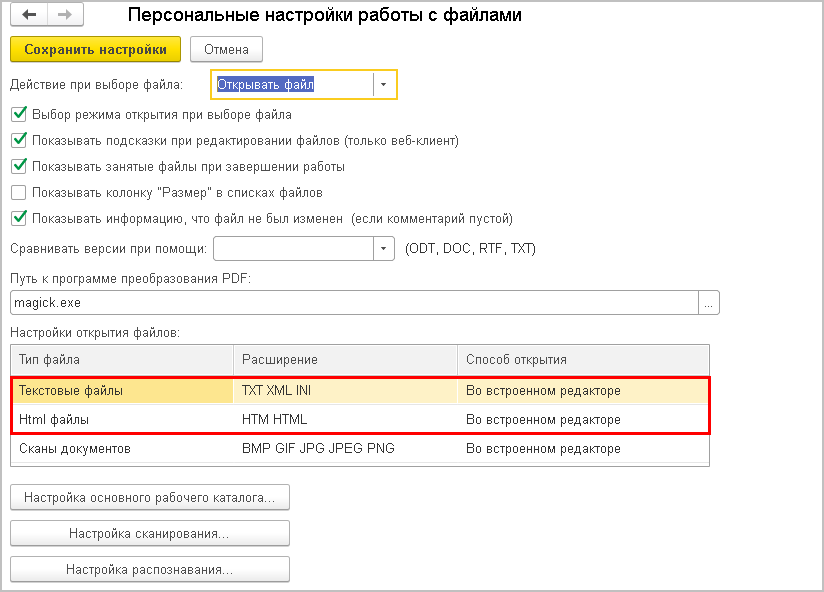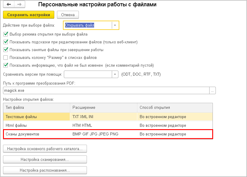 Если настройка установлена, то сканы открываются на просмотр во встроенном редакторе, а на редактирование – во внешнем приложении.