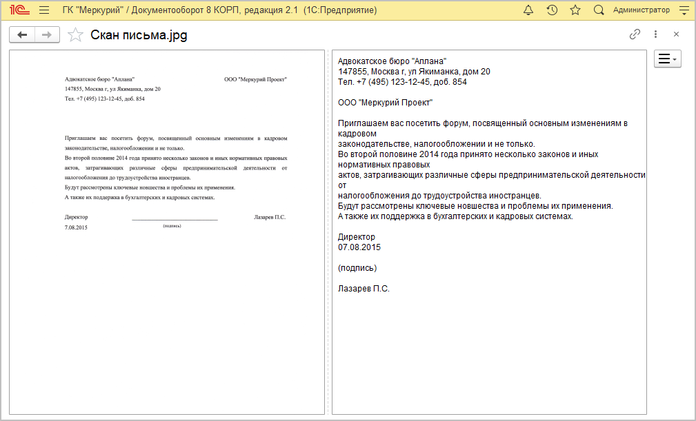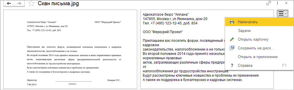 В новой версии программы появилась возможность открыть сканы документов во встроенном редакторе. Вместе со сканом открывается его распознанный текст.