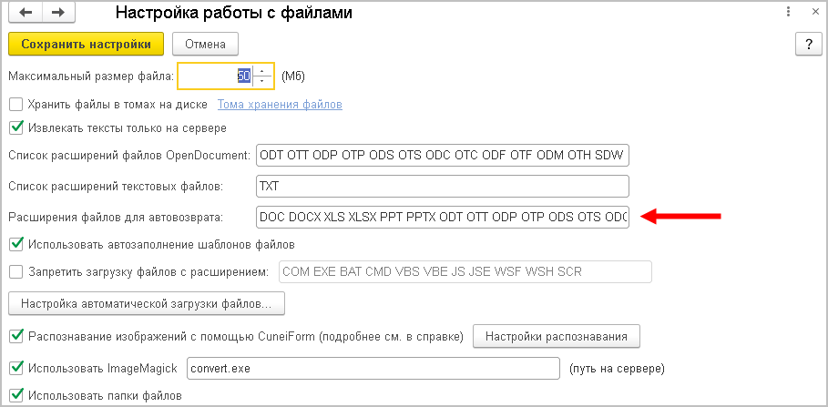 Вы можете настроить список расширений файлов, которые программа будет «возвращать» в базу автоматически.