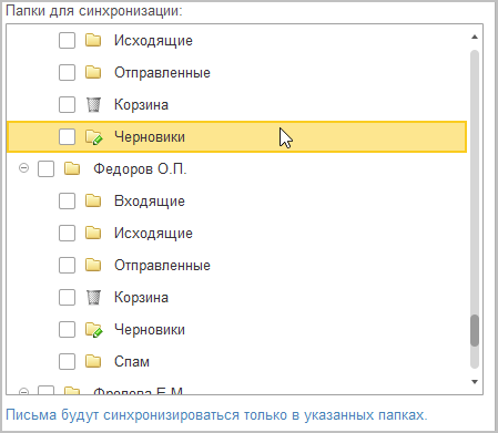 По ссылке Папки синхронизации нужно отметить папки писем, которые вы хотите видеть на мобильном.