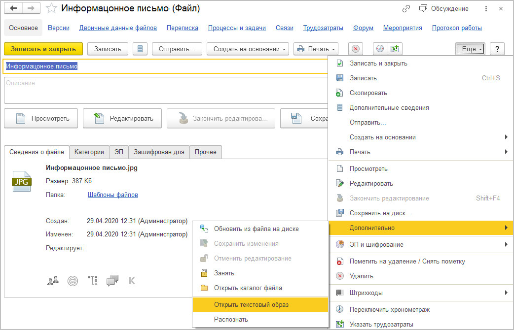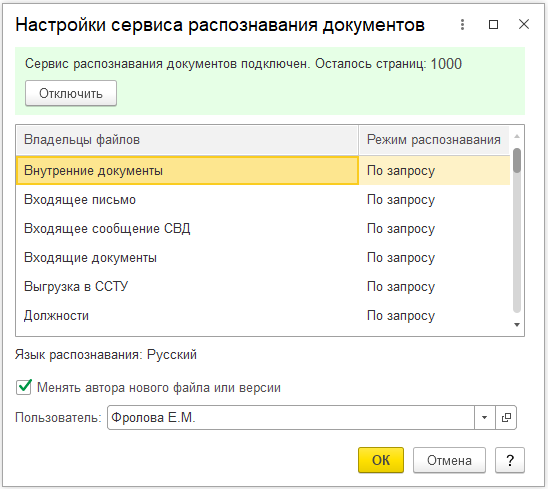 После настройки администратором все файлы, для которых установлен режим автораспознавания, будут распознаваться автоматически.