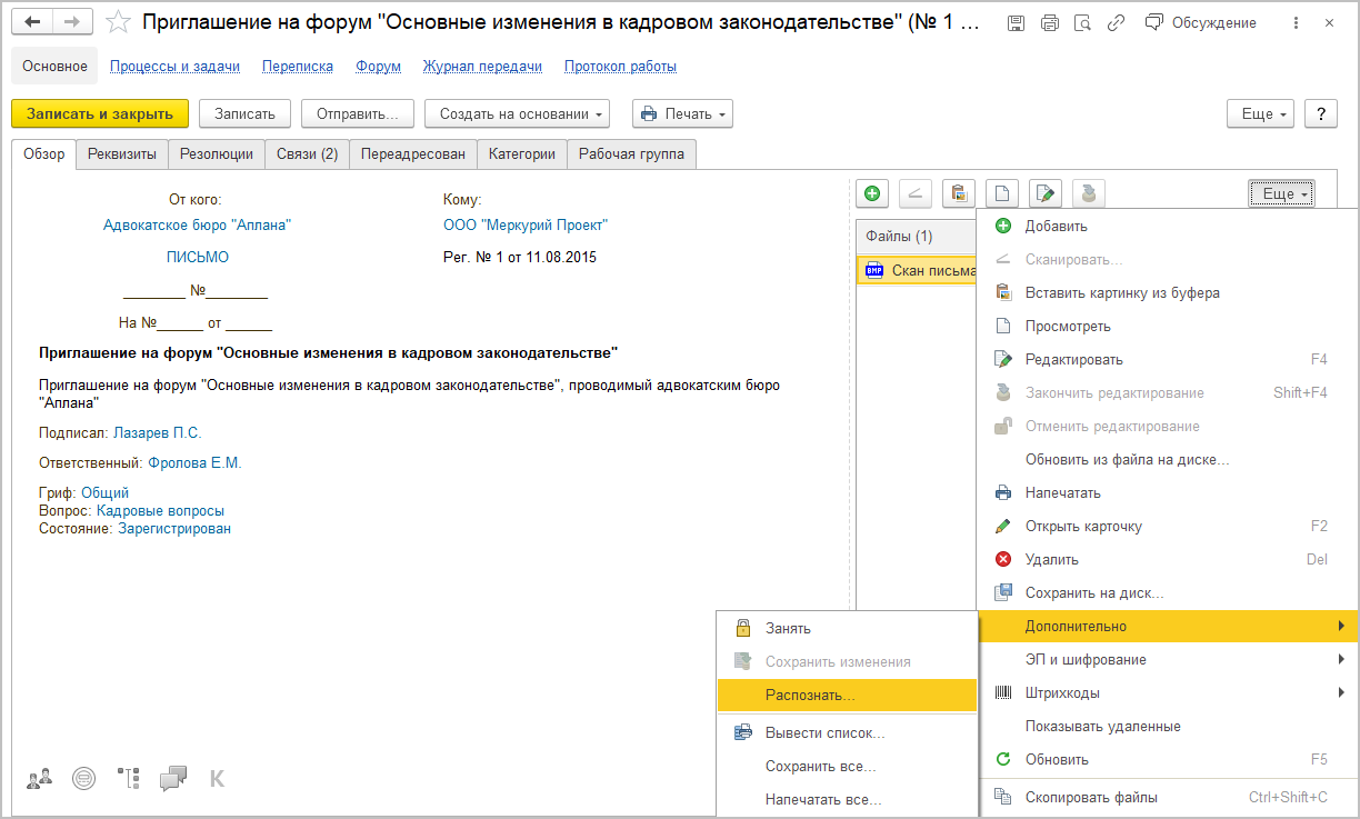 За распознавание файлов по-прежнему отвечает регламентное задание Распознавание.