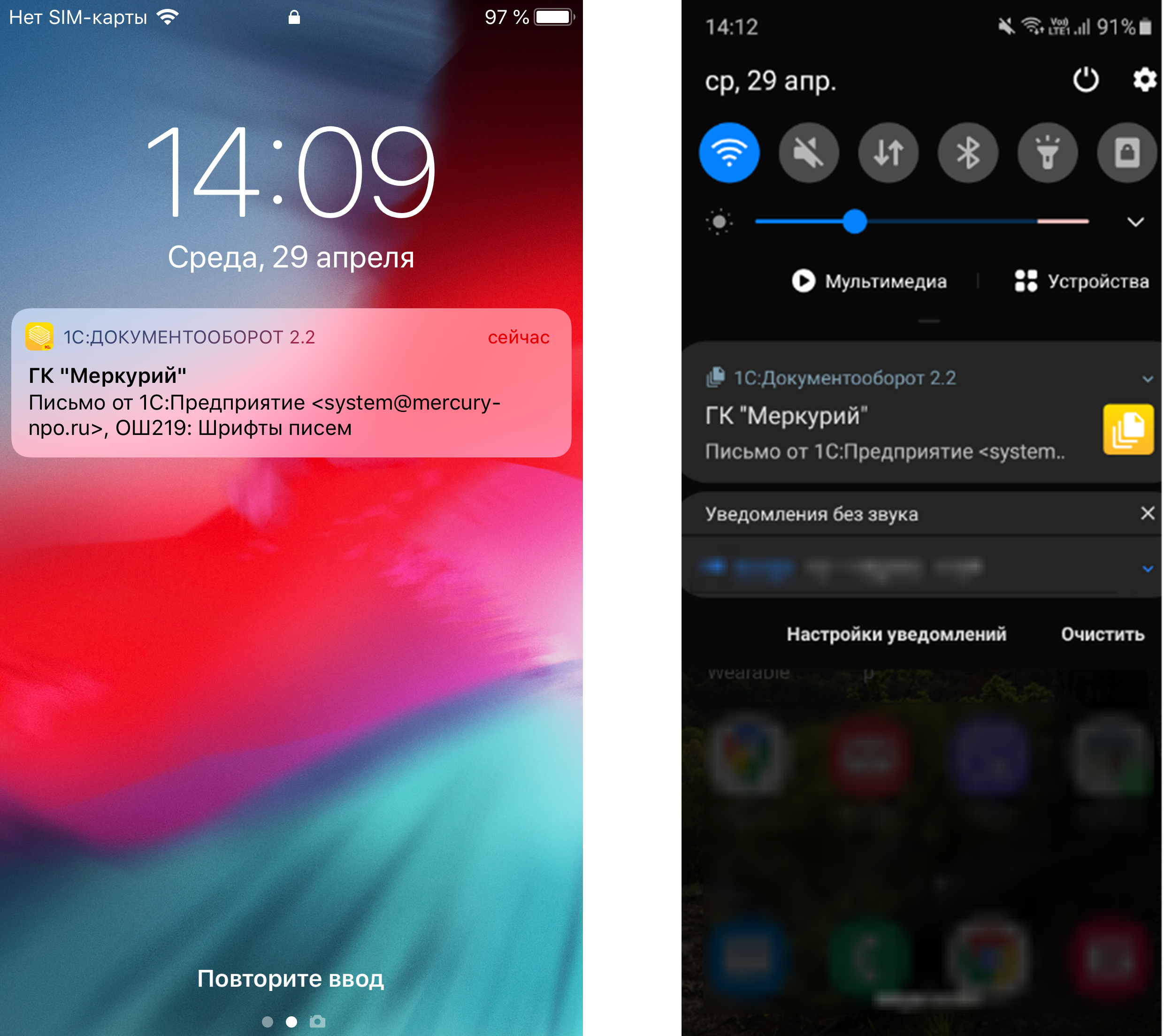 В мобильном приложении 1С:Документооборота теперь доступны push-уведомления по следующим типам данных: