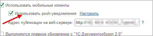 Шаг 2. В разделе Настройка и администрирование – Настройка программы – Обмен данными установить флажок Использовать push-уведомления.