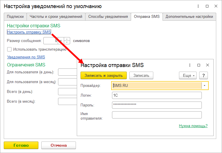 В новой версии программы упрощена настройка отправки уведомлений по SMS.
