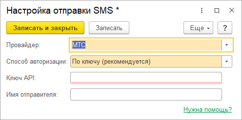 Для МТС появилась авторизация По ключу (рекомендуется). Этот тип авторизации будет по умолчанию устанавливаться для новых пользователей и пользователей, сменивших пароль. Для авторизации нужно ввести Ключ API.