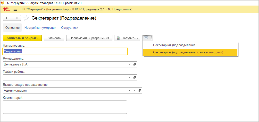 Теперь для подразделений и рабочих групп, у которых есть подчиненные элементы, создаются два обсуждения: с подчиненными элементами и без. Например, Секретариат (подразделение) и Секретариат (подразделение с нижестоящими).