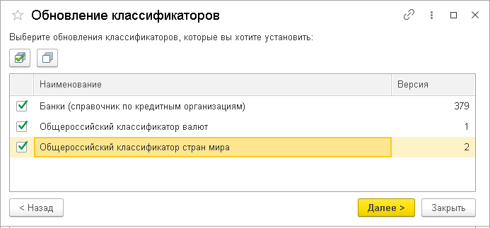 В новой версии программы предусмотрено оперативное обновление классификаторов валют, банков и стран мира через единый механизм загрузки классификаторов (раздел Поддержка и обслуживание – Интернет-поддержка и сервисы – Классификаторы и курсы валют – Обновление классификаторов).