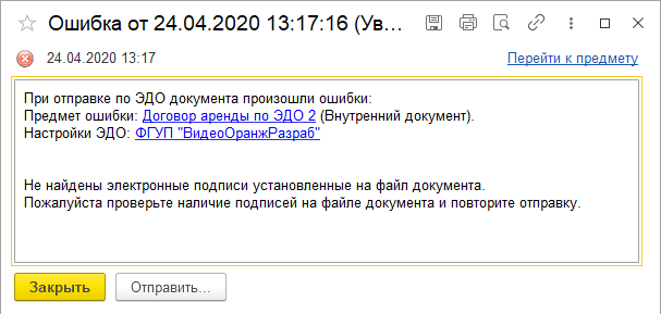Это позволит перевести простые (с точки зрения обслуживания) операции обмена по ЭДО в фоновый режим без участия пользователя. Если же при обмене возникнут какие-либо ошибки, то заранее выбранным ответственным программа отправить уведомления с описанием ошибки и советом по дальнейшим действиям.