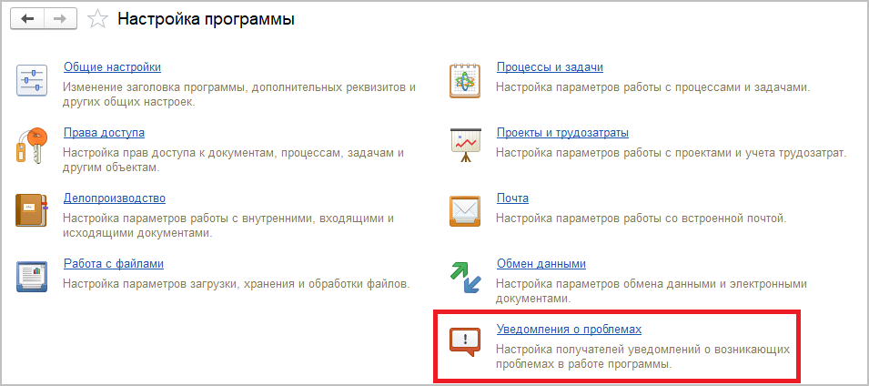 При возникновении проблем при работе программы теперь вместо задач ознакомления о проблемах пользователям будут рассылаться уведомления.