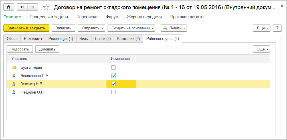 В «1С:Документообороте» при движении документа по процессу его рабочая группа заполняется автоматически. Раньше при этом право Изменение выдавалось только исходя из типа процесса: исполнение, регистрация, согласование, утверждение, – что могло потребовать дополнительной настройки прав.