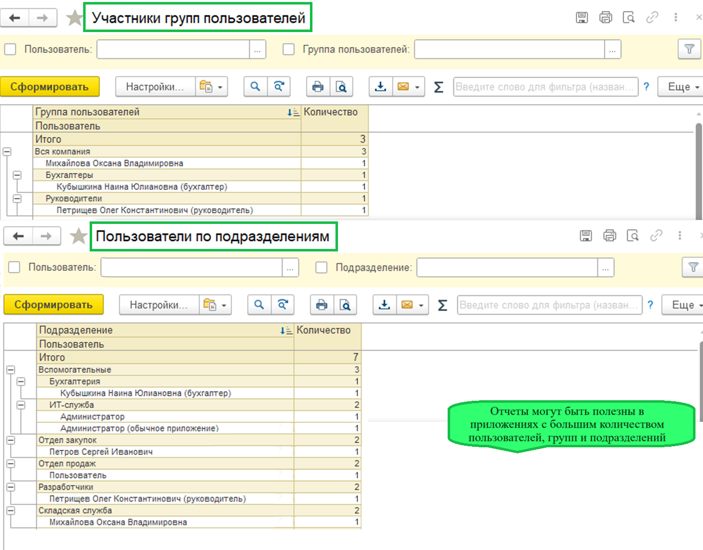Яндекс.Диск, Google Drive и Интернет (http-сервис).Расширены возможности по анализу прав доступа пользователей к документам и справочникам приложения с учетом ограничений доступа на уровне записей (RLS). Для этого в списках, карточках документов, элементах справочников доступны два контекстных отчета, которые можно найти в меню Еще - Отчеты: