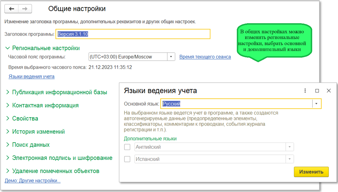 ОсновнаяПечатнаяФорма (Булево);НаименованиеПечатнойФормы (Строка).ПриОпределенииКлючевыхРеквизитовОсновныхПечатныхФорм общего модуля УправлениеПечатьюПереопределяемый необходимо обеспечить заполнение ключевых реквизитов Организация и Получатель из данных документа (для каждого типа документа). См. пример в демонстрационной конфигурации.НаименованиеСформированнойОсновнойПечатнойФормы и НаименованияСформированныхОсновныхПечатныхФорм общего модуля УправлениеПечатью. Их можно вызывать, например, при формировании актов сверки.ДиагностикаСоединения общего модуля ПолучениеФайловИзИнтернета добавлен параметр ТекстОшибки, по которому могут быть подобраны и возвращены более подходящие причины возникновения и способы устранения проблемы подключения к интернет-ресурсу.ПроверкаЛегальностиПолученияОбновленияПереопределяемый.ПриОпределенииНастроек можно управлять открытием формы для проверки легальности получения обновления. По умолчанию окно выводится всегда для новых версий конфигурации, кроме базовых версий, режима работы в модели сервиса и подчиненных узлов РИБ. Теперь можно отключить проверку легальности обновлений и в других случаях, например, в приложениях на арендованных серверах.УсловияРаспространенияОбновлений, чтобы выводить текст условия распространения обновлений программ на языке, соответствующем текущим настройкам пользователя. Для этого достаточно рядом с ним добавить макет с соответствующим языковым суффиксом, например УсловияРаспространенияОбновлений_en.РаботаСФайламиКлиент.ОткрытьФормуСпискаФайлов и функции-конструктора ПараметрыОткрытияФормыСпискаФайлов можно передавать дополнительные параметры открытия формы, а также указывать оповещение о закрытии формы.РаботаСФайламиКлиент.ОтправитьФайлНаПодписание.УправлениеСвойствами: