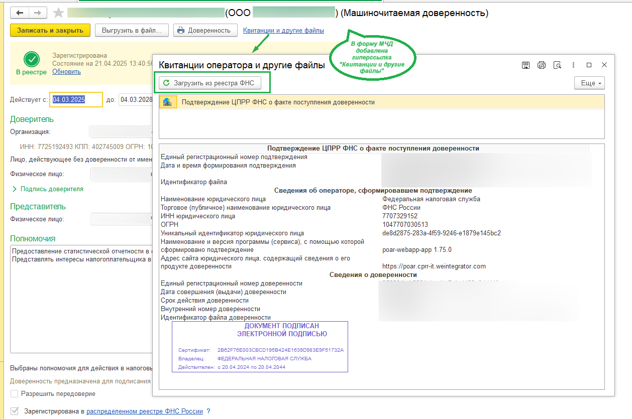 ЭлектроннаяПодписьКлиент.ОткрытьФормуРасширенногоПредставленияОшибки и функции-конструктора ПараметрыФормыРасширенногоПредставленияОшибки можно открыть форму диагностики с причинами и вариантами решения известных проблем при работе с электронной подписью. Эти рекомендации автоматически загружаются из классификатора через Интернет. Также в форме можно отправить информацию в службу технической поддержки. Рекомендуется вызывать эту функцию вместо вывода пользователю технологического сообщения об ошибке во всех случаях после неуспешной операции с электронной подписью.СвойстваСертификата общих модулей ЭлектроннаяПодпись и ЭлектроннаяПодписьКлиент. Теперь можно получить срок действия ключа электронной подписи, адреса списков отзыва, алгоритм сертификата и идентификатор ключа удостоверяющего центра сертификата. Эти свойства доступны при работе на платформе 1С:Предприятие 8.3.27 и выше.ПараметрыПроверки процедуры ЭлектроннаяПодписьКлиент.ПроверитьСертификат и функции ЭлектроннаяПодпись.ПроверитьСертификат можно установить свойство УказанаДатаМеткиВремени в значение Истина и передать дату в параметре НаДату.ЭлектроннаяПодпись предусмотрена функция СсылкиНаСертификаты, которая является дополнением к имеющейся функции СсылкаНаСертификат.ЭлектроннаяПодпись предусмотрена функция ШтампыВизуализацииЭлектронныхПодписей, которая является дополнением к имеющейся функции ШтампВизуализацииЭлектроннойПодписи. В качестве параметра Подпись рекомендуется передавать свойства подписи, полученные с помощью функции ПодписиОбъекта.ЭлектроннаяПодписьКлиент.Подписать добавлена возможность отправки документов на подпись в приложение Моя подпись от ФНС с помощью подсистемы Сервис мобильной подписи, для этого в конструкторе ЭлектроннаяПодписьКлиент.НовыйТипПодписи для параметра ПараметрыПодписи появились свойства РазрешитьОтправкуНаПодписание и ПакетнаяОтправкаНаПодписание. Для проверки доступности функционала появилась функция ЭлектроннаяПодпись.ИспользоватьСервисМобильнойПодписи . Для отправки в сервис мобильной подписи добавлена процедура ЭлектроннаяПодписьКлиент.ОтправитьНаПодписание и конструктор ЭлектроннаяПодписьКлиентСервер.ПараметрыПодписанта. Для получения статусов и подписей из сервиса мобильной подписи добавлена функция ЭлектроннаяПодпись.РезультатОтправкиНаПодписание . В этом разделе для каждой подсистемы даны дополнительные инструкции по переходу, которые необходимо выполнить в конфигураторе после завершения сравнения/объединения (см. главу 2 Инструкция по внедрению библиотеки).