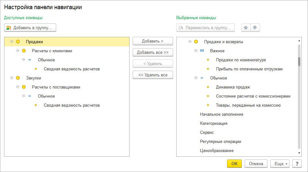 Список отчетов можно настроить исходя из потребностей пользователя. Для этих целей используется команда Настройка навигации.