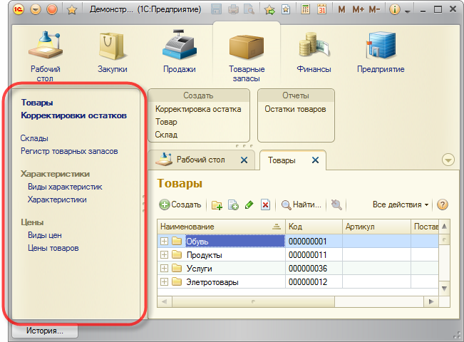 Один из стандартных элементов командного интерфейса прикладных решений. Она показывает основную, главную структуру прикладного решения и позволяет перемещаться между разделами программы.