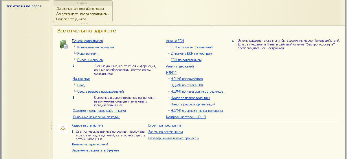 На рисунке ниже приведен пример внешнего вида основного окна приложения при выполнении такой команды как «Все отчеты по зарплате»