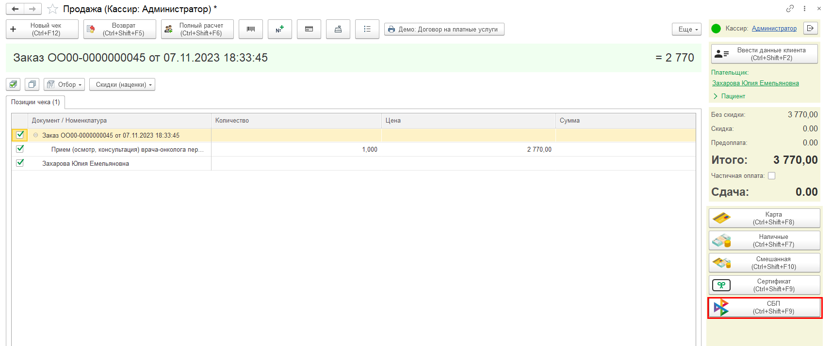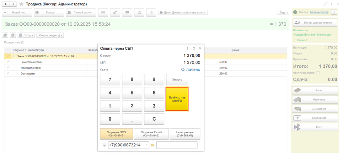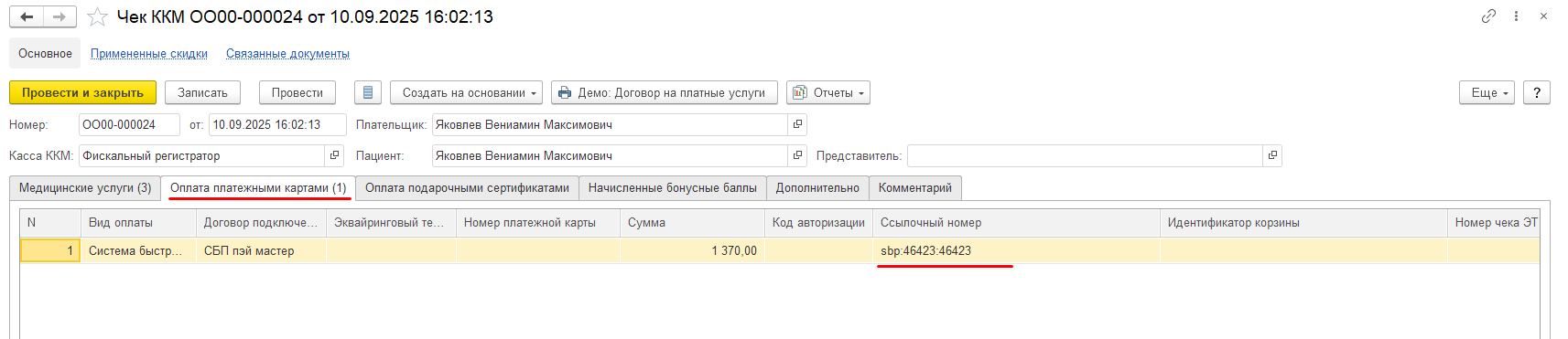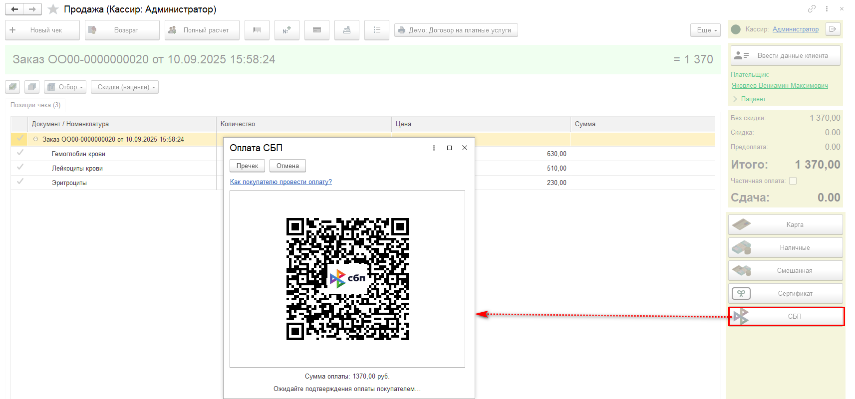 Система быстрых платежей (оплата по QR-коду) в 1С: Медицина. Поликлиника, 1С: Медицина. Больница