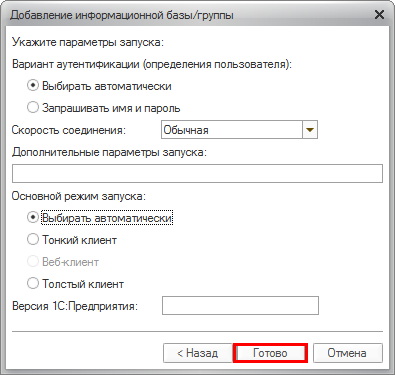 Укажите параметры запуска и нажмите на кнопку Готово.
