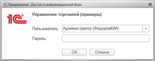 В качестве пользователя информационной базы выберите "Администратор (ФедоровБМ)" и нажмите на кнопку ОК.
