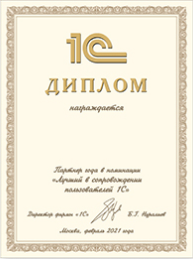 «Лучший партнер в сопровождении пользователей 1С»
